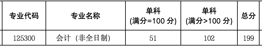 专业代码 | 专业名称 | 单科 (满分=100分) | 单科 (满分>100分) | 总分 |